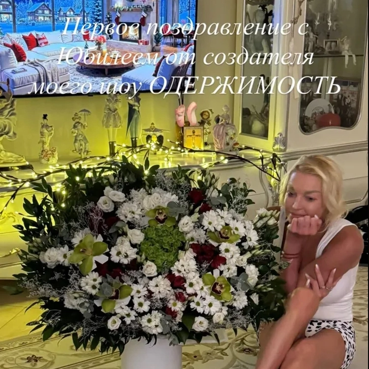 В личном блоге Волочкова опубликовала домашнее фото с букетом цветов. На снимке она сидит на полу особняка в белой майке и шортах рядом с роскошной композицией. «Первое поздравление от человека, которого я люблю 10 лет», — подписала балерина фотографию. Позже артистка объяснила, что цветы ей прислал продюсер Сергей Дворцов, создатель шоу «Одержимость», сообщает издание VOICE.