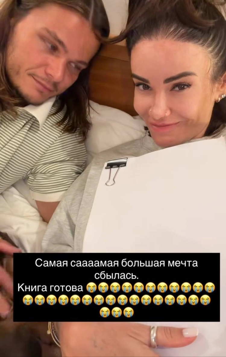 Начинающая писательница опубликовала 9 марта ролик, снятый вместе с ее мужем — предпринимателем Степаном Кузьменко, который поздравил ее с начинанием. «Моя книга завершена! <…> Только распечатали!», — гласит подпись к видео.