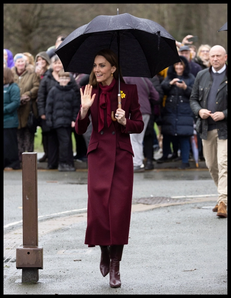 Выбор цвета вписывался в контекст визита, поскольку бордовый оттенок перекликается с «валлийским красным» — цветом дракона на национальном флаге страны, сообщает издание WWD.