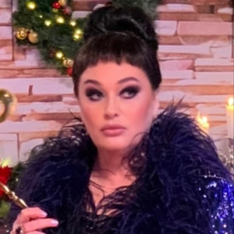 На актрисе — синий наряд с пайетками, боа из перьев и крупные серьги. Визажисты сделали ей короткую челку, высокий пучок и яркий макияж с акцентом на глаза. Подпись к фото Гузеева выбрала ироничную: «Хейтерам на радость: когда ни ракурс, ни свет, ни фильтры не в помощь. Самый неудачный образ за всё время. Но старались же».