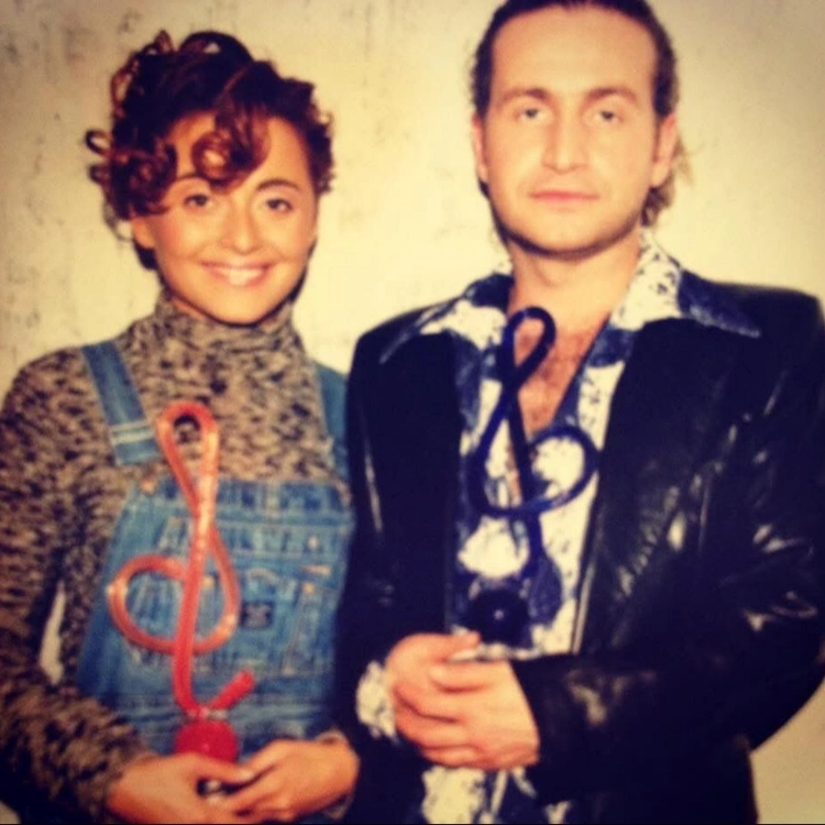 На фотографии поющая чета держит в руках по статуэтке в виде скрипичного ключа. Огненно-рыжие кудрявые локоны Варум уложены в пучок; на певице — серая водолазка с пестрым принтом и джинсовый комбинезон, а на Агутине — кожаный пиджак и белая рубашка с синим узором (тогда у него были длинные волосы, убранные в хвост).