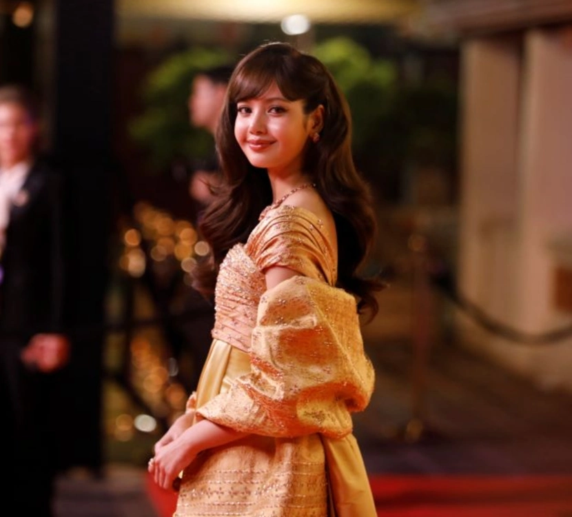 Образ был создан на основе архивного дизайна 1960 года, который в свое время предназначался для гардероба королевы-матери Таиланда Сирикит. В новой версии традиционный тайский шелк и парча в оттенках золота и розового были объединены с кутюрным кроем, корсетом и шлейфом. Этот выбор подчеркнул не только личную связь Лисы с родиной, но и значимость ее новой роли на стыке культуры, дипломатии и современной поп-славы.