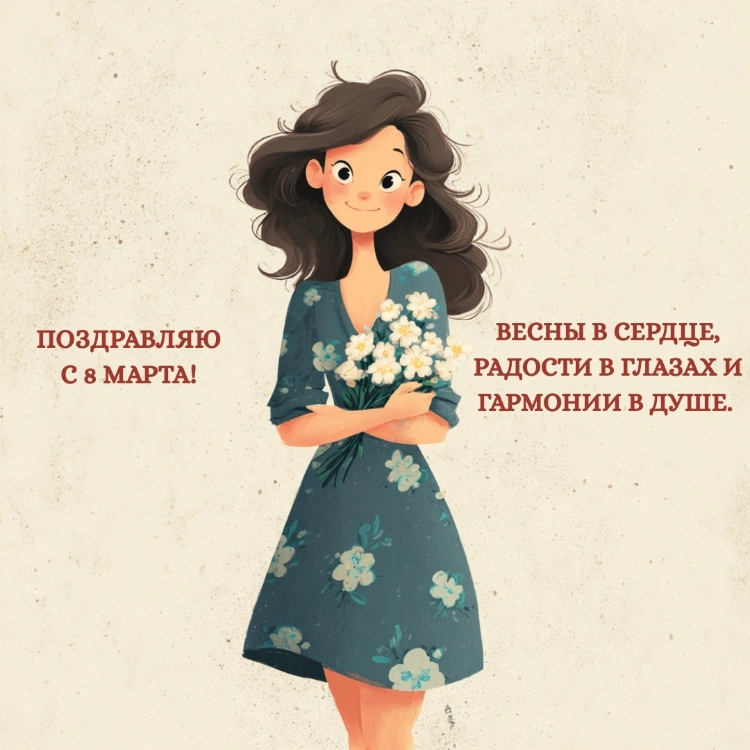 Второе — шаблонные формулировки, которые слышали все и которые не несут никакого личного смысла. «Пусть весна принесет счастье», «желаю радости, здоровья и любви», «пусть всегда будет солнечно на душе» — такие строки пишутся по инерции и читаются так же. Если времени на что-то личное совсем нет, лучше выбрать короткую, но искреннюю фразу, чем длинный шаблонный текст.