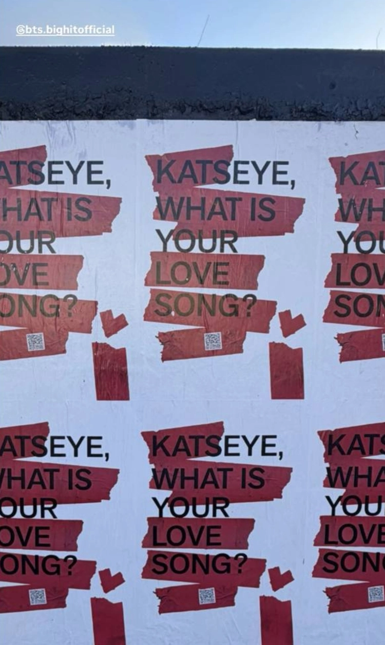 Однако, судя по новой публикации KATSEYE, оставшиеся в строю участницы готовят громкую коллаборацию. 23 февраля в сторис появился загадочный снимок афиш, на которых напечатана всего одна фраза: «KATSEYE, какая у вас песня о любви?», а также отмечен официальный аккаунт BTS.