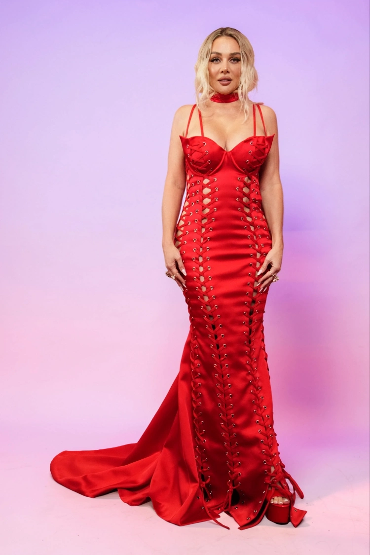 На одном из недавних светских мероприятий Анна Седокова привлекла внимание публики, выйдя на красную дорожку в алом платье-русалке со шлейфом. Наряд звезды состоял из корсетного верха с глубоким декольте, тонких бретелей и вертикальной шнуровки на металлических люверсах вдоль всего силуэта.