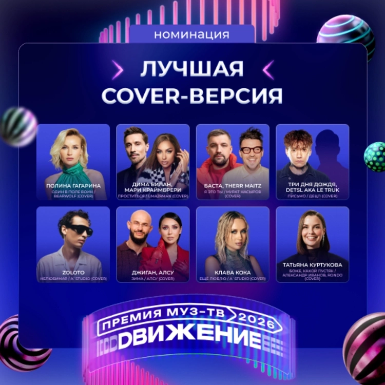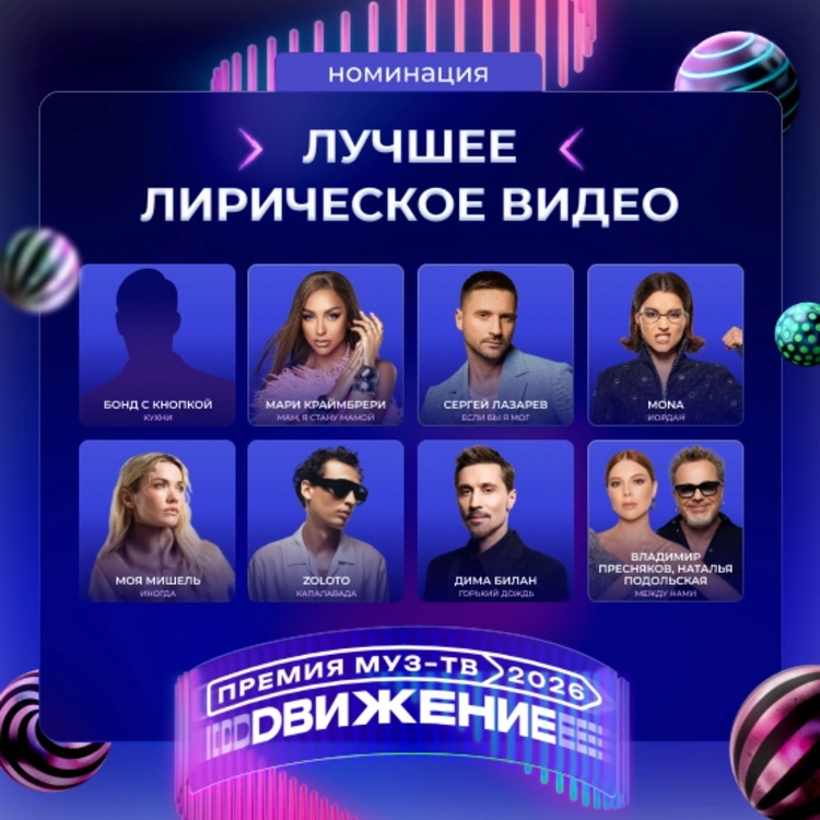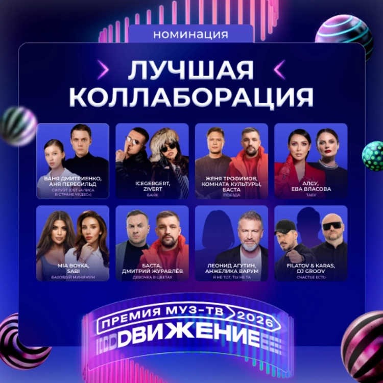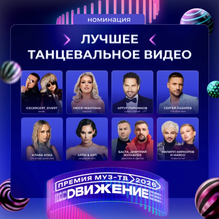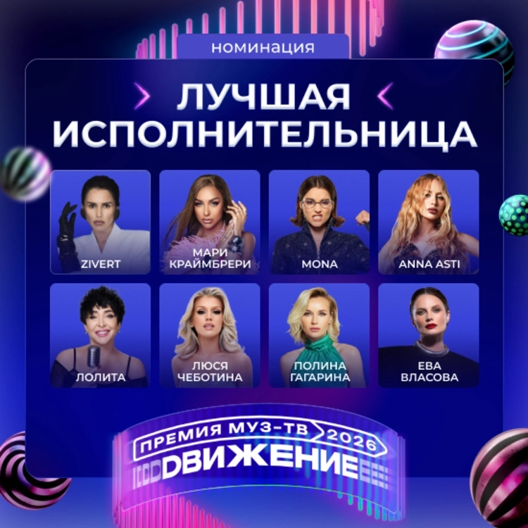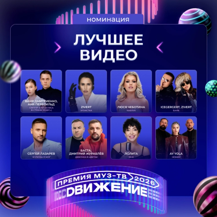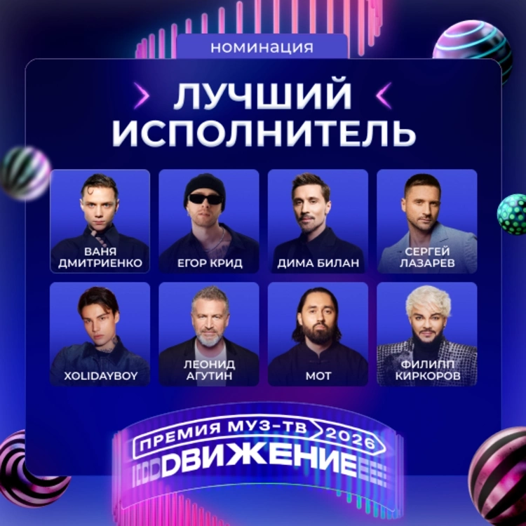 На Гала-ужине «Премии МУЗ-ТВ 2026. Движение» стали известны все номинанты. Среди них: Дима Билан, Сергей Лазарев, Ваня Дмитриенко, Филипп Киркоров, Ева Власова, Полина Гагарина, SHAMAN, Алсу. Голосуй за любимого исполнителя.