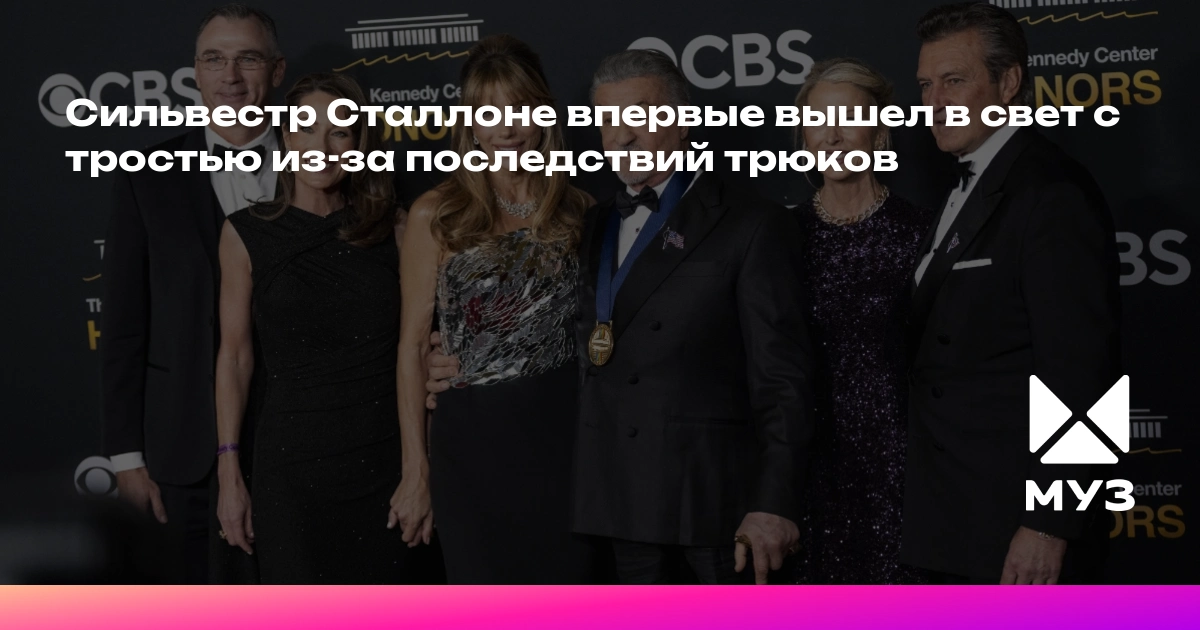 79-летний актер Сильвестр Сталлоне недавно появился на публике с тростью. Это произошло во время его визита на церемонию награждения Kennedy Center Honors в Вашингтоне. Актер получил почетную награду за вклад в кинематограф. На мероприятии его сопровождала супруга, 57-летняя Дженнифер Флавин.